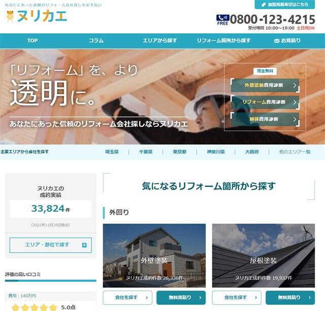 ヌリカエ(外壁塗装)のおすすめポイントは、1.多数の実績がある会社に依頼できること、2.無料で査定依頼ができること、3・市場相場を確認できることです。実績がある会社ばかりが登録されており、全ての企業は厳しい審査を通過しています。提携後にユーザーによるクレームが多い会社は退会させられるため、高品質なサービスのみを利用することが可能です。無料でオンライン査定できるところもポイントであり、一問一答のチャット形式で簡単に査定が受けられます。最大で4社一括査定を行うことができ、同時に査定してもらうことで市場相場をチェックすることが可能です。複数の会社から査定してもらえるため、不当に高額請求を行うようなサービスを利用するリスクを回避できます。
