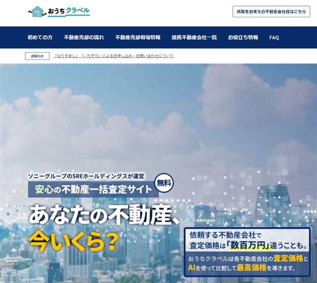 おうちクラベルのおすすめポイントは、1.提携会社が優良企業ばかりであること、2.AIによる査定価格を活用できること、3.売却に役立つ情報が充実していることです。提携会社の数が多いわけではありませんが、その代わりに優れた企業だけピックアップされています。不動産のノウハウが豊富な企業と出会えるためおすすめです。AIによる査定を受けることもでき、この査定額と各会社で出された査定額を比較しながら売却時に利用する会社を選ぶことができます。そして、ウェブサイトには不動産を売却する際に参考にできる情報が多数用意されており、初めて売却を行う人でも記事を読んで基礎知識を身につけることが可能です。ありがちな疑問を解決する情報も多く便利だと言えます。